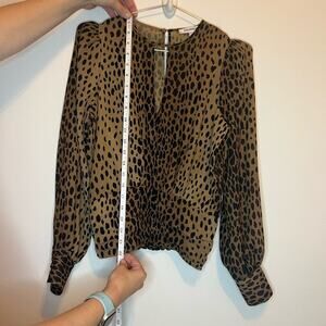 Good American Feline Fine Keyhole Blouse Cheetah, Size 4, NWOT