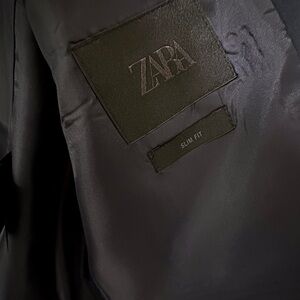 Elevate your wardrobe with this ZARA tailored suit set, featuring a sleek navy blue blazer and matching trousers in a modern slim fit. Perfect for business, formal events, weddings, or elevated everyday wear.