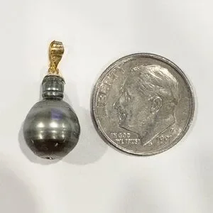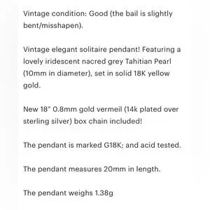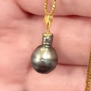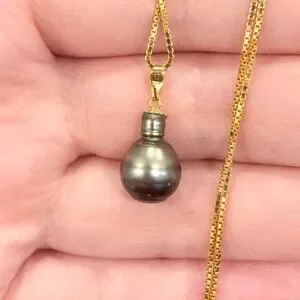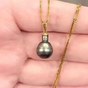 Vintage Tahitian Pearl Pendant: 18K Yellow Gold Solitaire, Elegant Dainty