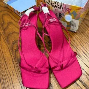 Make a bold yet elegant statement in these stunning Fluxx kitten heels by Jeffrey Campbell. Featuring a vibrant raspberry pink satin finish with delicate wraparound straps and a sleek square toe, these heels are the perfect mix of playful, chic, and sophisticated. Ideal for nights out, weddings, vacations, or anytime you want a pop of color đź’–