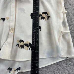 Zara Basic Womens Long Sleeve Blouse Elephant Print Sheer Button Up Shirt Medium