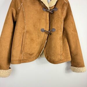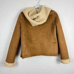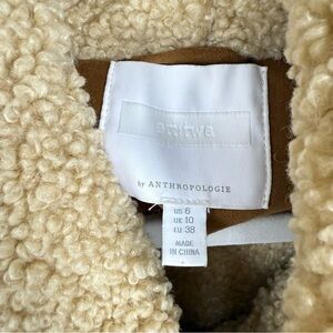 Anthropologie Jacket Womens 6 Ett:taw Hooded Sherpa Faux Suede Brown Tan Coat