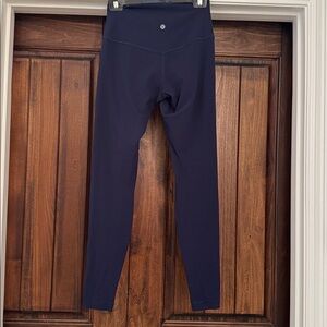 lululemon athletica Align High Rise 28” Leggings in True Navy. Perfect for workouts or casual wear. Comfortable and flexible fit. I may have worn these once or twice. I am doing a major closet, clean out and have a smoke free home! The tag came out of these 🤦🏻♀️