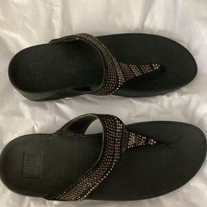 FITFLOP Wedge Thong ( Size: 10) ( Color:: Brown/ Silver/ Black) PREOWNED