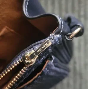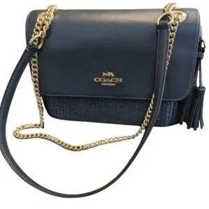 Coach Full Size Klare Bag In Navy Blue With Woven Front.