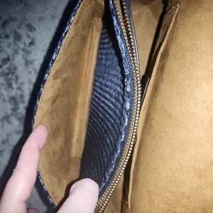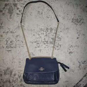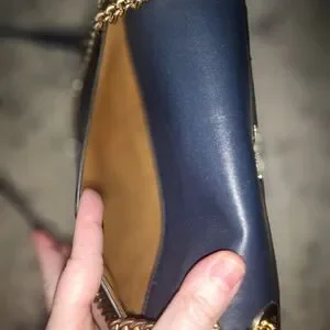 EUC. Gorgeous bag! It's classy, timeless, a beautiful neutral navy color, and the perfect size. It can be worn casually or with dressier outfits. The chain can be worn as a shoulder bag or a crossbody. The top of chain is leather for comfort when wore as a crossbody. It has a main compartment with a slip pocket, a zipper pocket and a front pouch all covered with the flap with magnetic closure. It has a handy rear slip pocket for quick access.