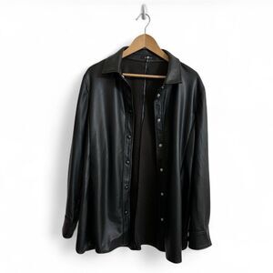 NWOT 7 for all mankind Faux Leather Snap Button Shirt Jacket Shacket Size Medium