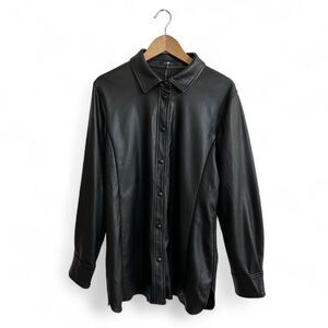 New without tags 7 For All Mankind black faux leather snap button shirt jacket or shacket.