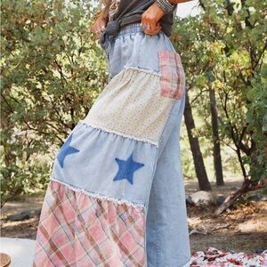 POL Chill Patchwork Wide-Leg Pants