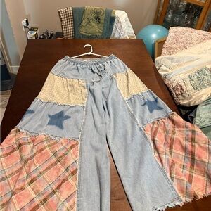Comfortable Cotton fabric with unique mix of plaid, floral and star patchwork