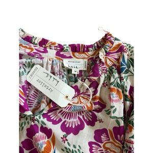 NWT Nicole Miller Artelier Top Floral Tunic M Boho Cottagecore Resort Peasant