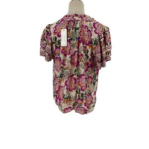 NWT Artelier Nicole Miller Floral Rayon Blouse M Boho Short Sleeve Top