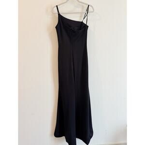 La Femme One Shoulder Black Gown With Side Slit Formal Dress Size 6