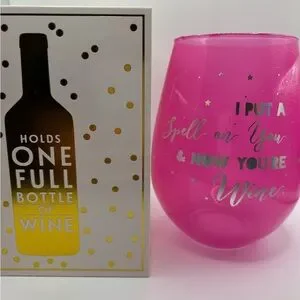 Pink Wine Glass-I Put A Spell On You & Now You’re Wine - fits whole bottle 30oz
