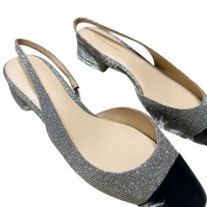 VERONICA BEARD Cecile Lurex Cap-toe Slingback Ballerina Kitten Heels 8.5 Italy