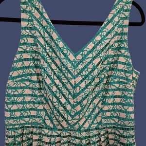 Step out in style with this elegant teal and white lace dress. Perfect for any occasion, this dress combines comfort and fashion effortlessly. NWOT $169
