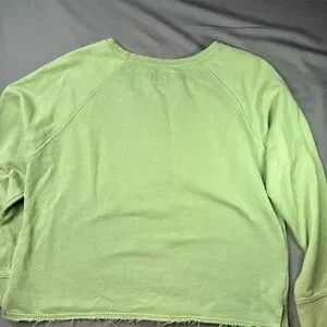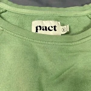 Pact Organic Cotton Green Cropped Sweatshirt, Womens M, Raw Hem Casual Cozy