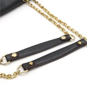 Pre-owed MCM shoulder bag in black. Gold chain straps add elegance. Perfect for versatile styling. Comes with brandnew dustbag bag is great condition. Medium size