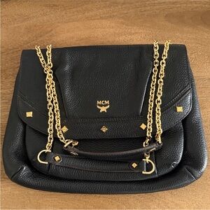 MCM Black Shoulder Bag with Gold Chain