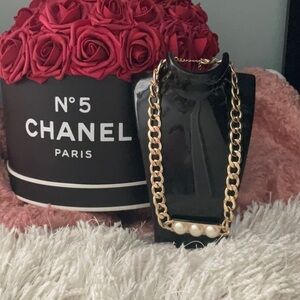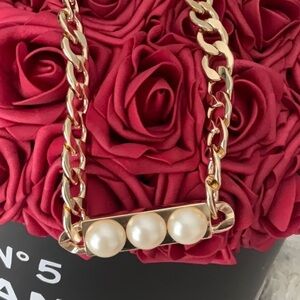 GOLD TONE AND PEARL BAR LARGE LINK NECKLACE
