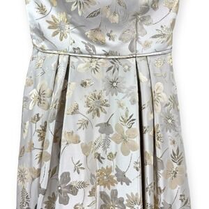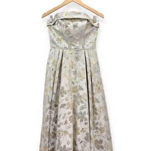 Mac Duggal NEW White Gold Brocade Strapless Golden Floral High Low Gown - Size 4