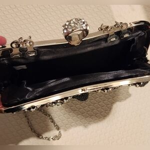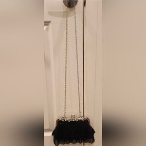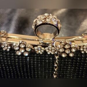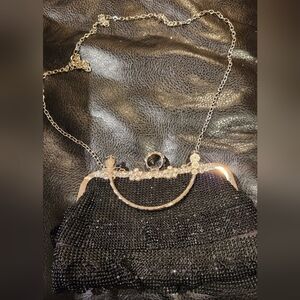 Black Micro Beaded Silver Tone With Unique Ring Clasp Handle. Art Deco