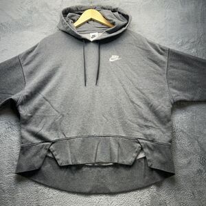 Nike Hoodie Sweatshirt Womens Medium Gray Cropped Pullover Fleece High Low Hem