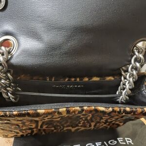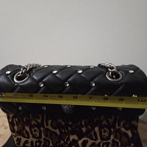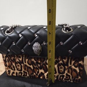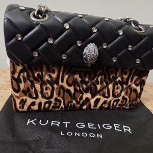 Chic Kurt Geiger shoulder bag with quilted black top. Bold leopard print adds flair. Perfect for stylish outings.