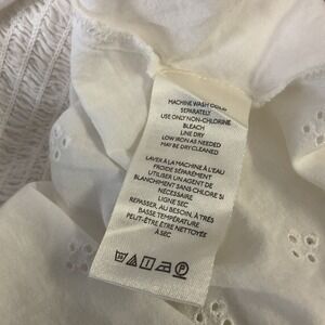 Keywords: Free People blouse, white eyelet top, off shoulder blouse, smocked top, puff sleeve blouse, peasant blouse, bohemian top, boho chic blouse, lace detail top, romantic blouse, summer blouse, festival top, casual top, women's blouse, xs blouse