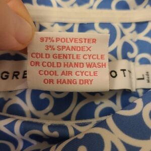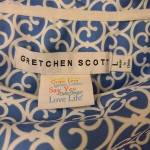 Rare style Gretchen Scott cornflower blue and white patterned dress with solid tie belt. Material is a silky scuba type feel perfect for warm weather with lots of stretch. Excellent used condition, looks like new.