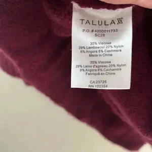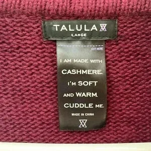 ![[L]Talula Burgundy One Button Closure Wool Cashmere Cardigan Big Neck Sweater - Picture 6 of 9](https://di2ponv0v5otw.cloudfront.net/posts/2025/12/30/6954bd9469ef1a7412ada4f4/m_wp_6954bdb5bd4ce30ae5ae6a09.webp)