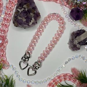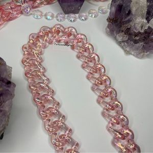 Peach Pink light pink heart shaped chain links w/AB iridescent rainbow color shifts