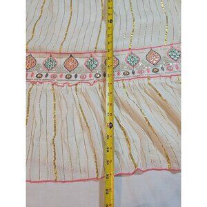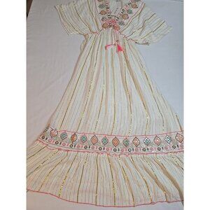 ananta size L/XL cream Boho flowy maxi dress embroidered gold striped New