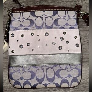 COACH Y2K Vintage Signature Logo Purple Crossbody Suede Grommet Silver Purse Bag