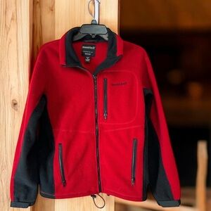 Montbell Red Black Zip Outdoor Hiking Fleece Jacket Mens S