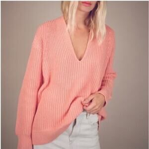 T Alexander Wang Deep V-Neck Knit Sweater Salmon Coral Size Medium