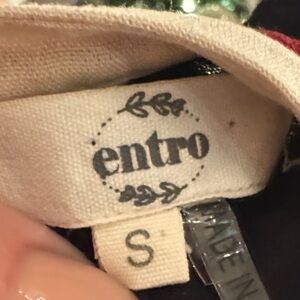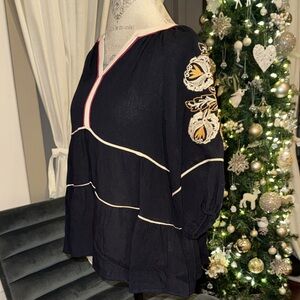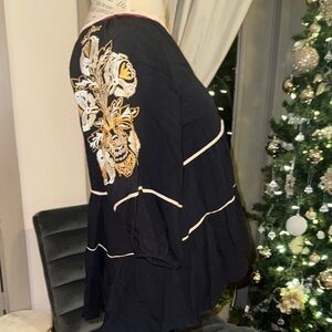 Entro Embroidered Black Women's Top yellow gold cream ivory design shirt Small