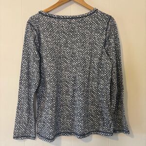 Talbots Large Long Sleeve Tee Cotton Blend Dotted Navy Blue/White Athleisure Gym