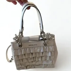 Elevate your style with this elegant Michael Kors ruffled bag. Featuring a chic gray color, it's perfect for any occasion.