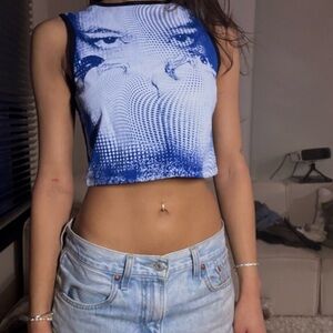 Bold crop top with striking graphic design. Super Y2K and unique and so cute with a pair of jeans. Worn a couple times, no blemishes. Perfect for a trendy look.