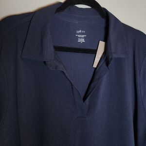 NWT J. Jill Fit Cotton Stretch Navy Blue Polo Short Sleeve Shirt Size 2X