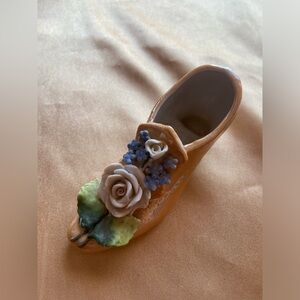 LAST CHANCE 🔥. Antique Porcelain Glazed Shoe/Slipper with Floral Accent