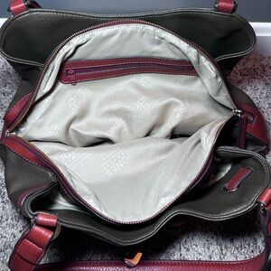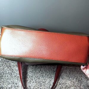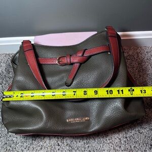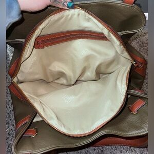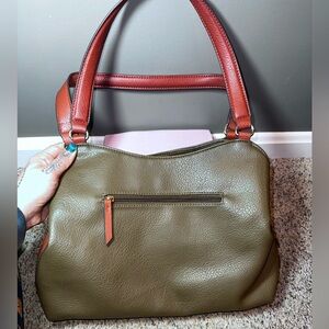Jones New York Signature Olive Green Satchel Shoulder Bag Brown Trim