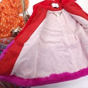 Suncoo Super Super Soft Pink Red Fleece Faux Fur Color Block Vest Sz Xs