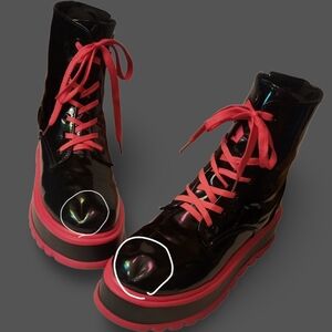 ✦✦Patent Pleather Black and Neon Pink Platform Boots Punk Cyberpunk Goth Rave✦✦