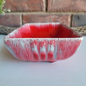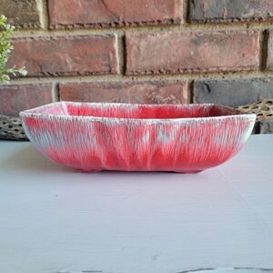 Vintage MCM Red Drip Glaze Pottery Planter