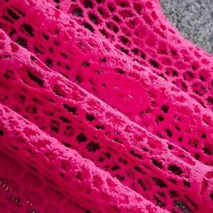 Hot Pink Elegant Women's Floral Lace Hollow Zipper Front Long Sleeve Blouse