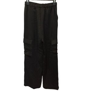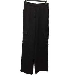 Zara Womens Pants S Black Satin Straight Leg Cargo Tactical Utility 8181/318 NWT
