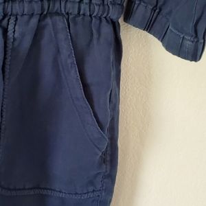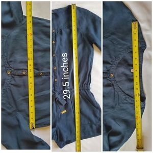 Juicy Couture Beach 100% Linen Romper Navy Blue, size S, 3-quarter sleeves, buttons down the front, elastic waist, drawstring waist to adjust, pockets in front, fabric does not stretch, in excellent condition.