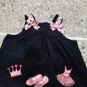 Vtg Rare Editions Navy & Pink Polka Dots Ballet Theme Corduroy Dress-Size 24 Mo.